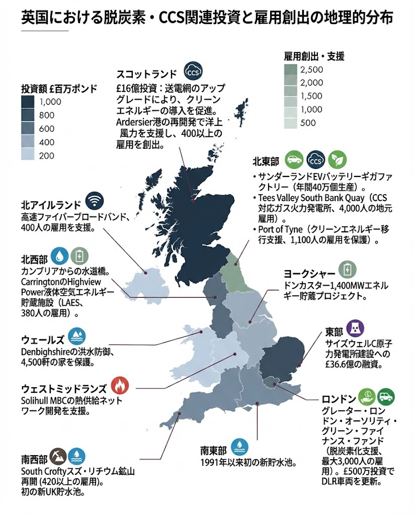 特にCDR分野との関連が深いCCUSセクターにおいては、英国内の主要な産業クラスターである「ハイネット(HyNet)」や「イースト・コースト・クラスター」の支援に注力する。